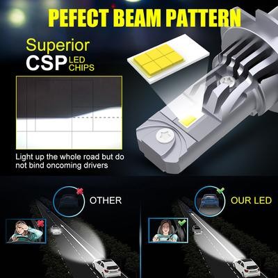 2pcs H7 LED مصباح أمامي قوي المصباح Mini Wireless 40000LM 6500K CSP للسيارة الصمام الثنائي التلقائي