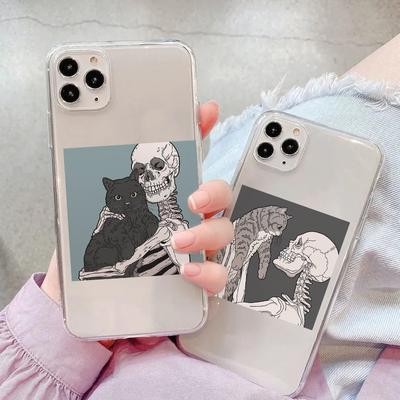 جمجمة CTIN CAT CLEAR CASE لـ iPhone 13 12 11 XS Samsung Galaxy A52S A70 A
