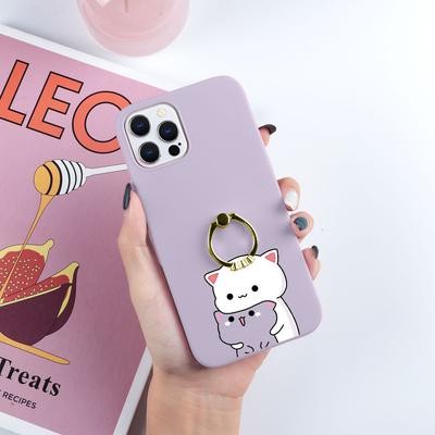 Cat Cat Finger Ring Case لـ iPhone 12 11 Pro Max 8 7 6 Plus X XR XS Max