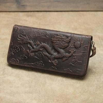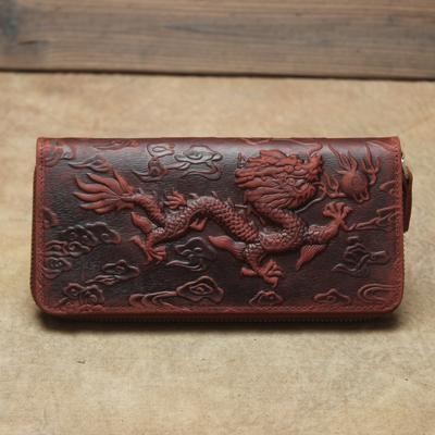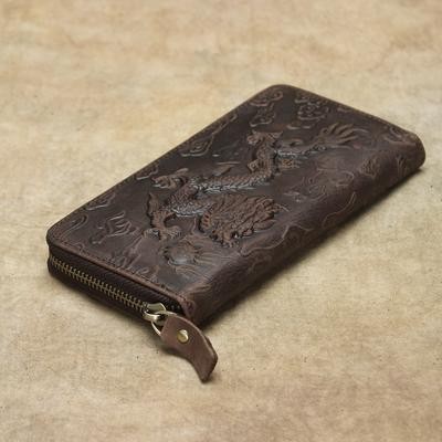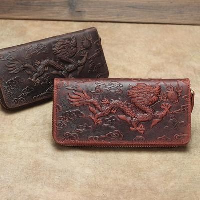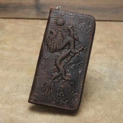 титульная страница > الحقائب وحقائب السفر > جلد حصان ريترو محفظة منقوشة 2021 نيو تنين نمط طويل الرجال محفظة مصنوعة يدويًا كور