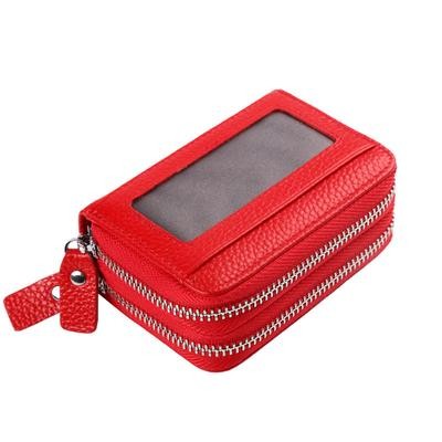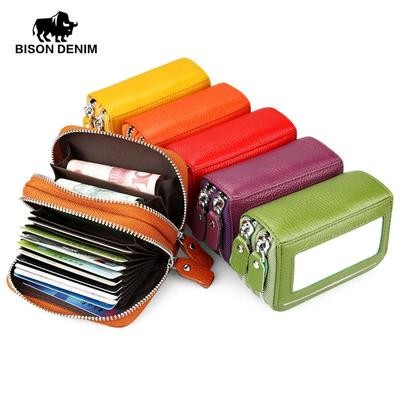 موضة نساء أصلي بطاقة الائتمان الجلدية محفظة سعة كبيرة السوستة مزدوجة أنثى